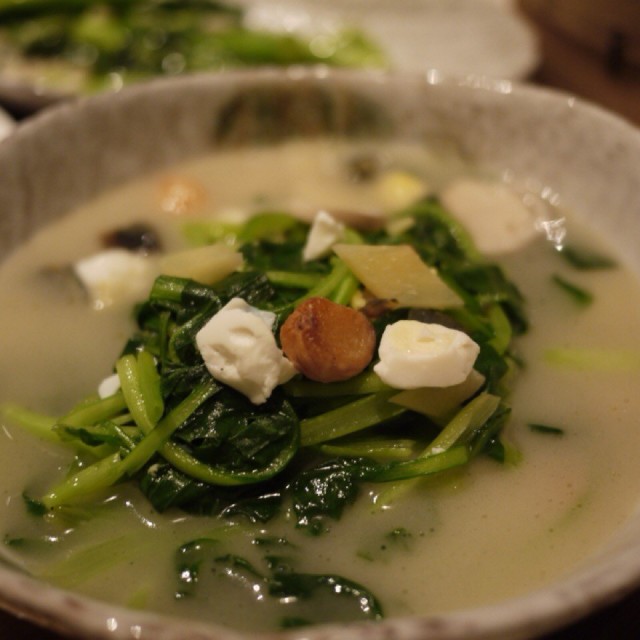 红馆是够高档的粤菜餐厅了,公司偶尔来这里请客,跟着吃过几次,确实很符合人家的定位的,几乎没有低于一百以下的菜的。豆腐白菜昆布汤,这个乍一眼看上去怎么这么普通啊,就是豆腐白菜汤嘛,喝了就知道特点在哪儿了,昆布汤底的鲜味绝非白菜或者豆腐能够赋予的,而且豆腐很鲜滑,一点酸味都没有。咕噜肉也是我最爱了,肉块其实肥瘦各半的,反正是不会太腻,表层的浆液很浓稠,下饭很好。