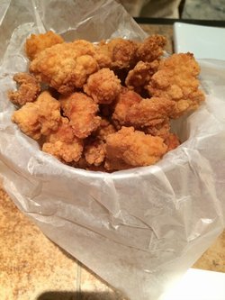 老码头环境好好,关键是人少,显得无比高大上。这家披萨店卖的披萨都无比的大,两个人根本吃不完啊,后悔没有买一片片的。披萨可以双拼的,选了夏威夷拼地狱厨房。饼皮很薄,味道一般,和其他店吃的披萨差不多,没啥特别的。还点了鸡米花,鸡米花炸的很好,香脆不会太油腻,外面脆脆的里面嫩嫩的,微微一点辣,很提味。