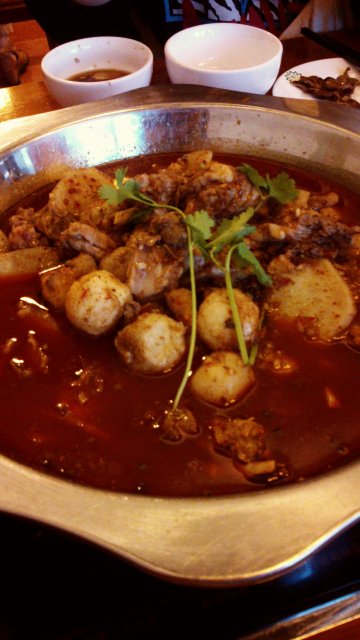 这家芋儿鸡是在东区旁边都不怎么找得到下班之后被两个小伙伴叫去吃的 团购的两人套餐 分量还是很足 我们三个人吃也足够了主菜:香辣芋儿鸡(小份,价值65元)- 凉菜:乡村渍胡豆(1份,价值12元)- 素菜:土豆(1份,价值5元)苕粉(1份,价值5元)- 甜品:水晶冰粉(1份,价值5元)- 饮品:酸梅汤(1扎,价值8元)- 主食:米饭(2份,价值2元)- 其他:一次性餐具(2份,价值2元)因为是三个人 就在多了一元加了一份餐具一去就把冰粉还有胡豆 酸梅汤端上来了酸梅汤冰冰的 吃辣的时候喝还是很适合的胡豆味道一般 不过里面慢慢一层清油 看起来还是很棒而且胡豆真的是软软糯糯的 吃起来口感很好 在加上里面的小米辣和香菜 还蛮开胃吃了一会芋儿鸡就上来了味道比起来还是没有总店的好 用料明显感觉不如总店的红亮 不过好在芋儿很软 入味 这点还是很棒唯一就是苕粉煮在里面没有煮熟 咬了一口还硬的 而且比较咸土豆还不错 脆脆的总体也还是不错 芋儿够软 入味就好 哈哈哈哈