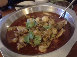 嘿嘿,运气好啊,秒杀去的。最近一直想吃芋儿鸡,还在观望那家好,正好遇到秒杀。红枫岭店有一点远,还好,依靠百度地图,直接杀到店里。听到我是秒杀的,店家的态度还多好的,一楼都已坐满了,直接上了二楼。核对了信息,就等到上菜啦!环顾四周,店里布置还挺小资的,不一会儿,二楼也坐满啦!小份芋儿鸡加两碗白饭两个人足够了。芋儿好吃,很糯、很入味,比鸡好吃,但如果没有鸡,芋儿也不是这么好吃啦。要得中辣,,味道刚刚合适,但吃完后回口有一股香料味道。总的,还是可以。那个芋儿太好吃了。:)