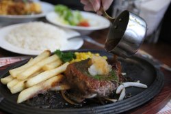 去这家餐厅已经不是一次两次了,为的就是那道让玛丽莲梦露都魂牵梦萦的洋葱汤。近期前往发现无论是餐厅布置还是菜单的选择都有了不小的变化。橘黄、明亮的整体装饰风格和开放式的餐厅设计不仅让所有客人身心放松,处处可见的吊灯、桌面饰灯,加之沙发和木质装潢的设计更是让客人产生家庭的温馨感,在美味可口的感官世界中尽享与亲友的欢聚时光。牛肉汉堡炸虾仁可乐饼,牛肉汉堡作为餐厅的招牌是必点,加入24%的澳洲牛肉、鸡蛋、面包粉捏制而成的肉饼,松软鲜嫩。油炸虾仁外脆里嫩,油而不腻,上桌时服务生迅速淋上特制红酒酱料,升腾的热气伴着浓郁香味四散开来,让人食欲大增。海鲜咖喱饭,用日式爪哇咖喱调配的酱汁,里面还加了杏仁、腰果、干贝、虾仁、鱿鱼等丰富食材,咖喱口味更偏辛辣,吃过之后唇齿留香。西班牙三鲜炒饭,金黄色的米饭上覆盖着大块三文鱼,新鲜大虾仁和干贝,菌菇蔬菜等等,份量十足。健康菠菜沙司鸡肉意面,用菠菜榨汁拌入面粉内压制出来的面条,每一根都能吃出菠菜的清甜。牛油果虾仁色拉,把牛油果分成两半,挖去果核,用色拉酱填满后放上虾仁,造型可爱,用勺子挖一块入口,喜欢如同轻乳酪般的口感,据说还有很高的营养价值。黄金14号甜薯,色泽金黄、入口香甜细腻、口感粉糯。有点像栗子的质感,个人很喜欢。焦糖芒果冰激凌,作为饭后甜品造型肯定很受女生欢迎,焦糖奶油、新鲜水果、玉米脆片、冰激凌、草莓果肉色彩缤纷,层次分明,每一口都有惊喜。…查看更多