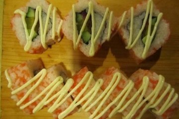 好久以前团购的一单了,当时没注意地点,后来幸亏有对这边比较熟悉的朋友领着,否则我很担心自己会找不到。店面在一个大厦的内侧,当时去的时候,看到店门是有一些日式风格的装饰,不过门口一些装修材料的堆放还是有些减分。虽然店面的位置并不是非常醒目,不过不知道是不是团购的缘故,我们就餐当天中午人还是很多的,我们也是等了一会儿才吃上。店内面积不大,有两层,但二楼的一侧和一楼是个通顶的设计,所以就餐区都在进门左手边的一侧,操作台在一楼右手边,正对进门处。室内的装修比较杂糅,有些日式元素,也有些欧式风格的饰物。我们是在二楼就餐,通过木楼梯上楼后进入狭长的就餐区,两侧的桌椅摆放显得有些局促,地板也略有些粘腻,从中间走过时有些担心会不会滑倒或者碰到其他桌。套餐的内容很丰富,不过有些菜品跟想象中的差别有些大。醋拌裙带菜,分量不大,卖相也比较一般,看着水嗒嗒的,不过味道调的不错,比较爽口。秋刀鱼真。。。苗条,一条鱼孤零零地躺在盘子里,看着都不忍心动筷子,别看鱼身上烤得都偏糊了,可上来时居然是温凉的,大大影响了口味,鱼的味道本来就一般,糊的地方发苦没吃,于是整条鱼可吃的部分实在不多。刺身拼盘,包括三文鱼、金枪鱼、加吉鱼和北极贝各3片,我享受不来这类生冷食物,都是朋友吃的。朋友说他家刺身的新鲜程度一般,有些鱼片的口感都是发软的了,不知是不是冻得太久的缘故。土豆沙拉,还可以的,土豆泥比较细腻,有些黄瓜和胡萝卜丁搭配,营养和口味都比较丰富。培根薯片沙拉,这样的沙拉我还是第一次见。几片油煎过的培根片和过油后的薯片拌在一起,唯一让我能认出是个沙拉的就是上面的沙拉酱了。但实话实说,味道还是可以的,培根干香的薯片脆香都不错,不过缺点的油大。朋友对土豆无爱,也不吃油大的食品,于是,这道菜基本上也是我自己干掉的。加州卷,对我比较合适,因为这种寿司里没有生冷的肉品。他家加州卷的味道还行,但新鲜度待考量,因为米的口感不是很好了,而且上面的鱼籽比较少,而且似乎已经陷到米里,总让我觉得不是刚沾上的。牛肉泡菜锅,可能是他家的容器不足够多,所以有的桌是用陶锅上的,我们的试用小铁锅上的,挺有在家吃饭的感觉。所谓的牛肉泡菜锅,更像是泡菜汤煮牛肉片及乌冬面。乌冬面是粗粗的那种口感有些艮,牛肉片老了,除了汤里微微的咸辣味道几乎没吃到泡菜,跟我想象中差别还是挺大的。咖喱饭没有特色,咖喱的味道很淡,里面的配料也比较少,上得很晚,当时我们已经吃饱,所以直接让店家打包了。第二天吃的时候感觉就是普通的炒饭,颜色微黄而已。清酒因为平时喝得不多,正宗与否不好判断,朋友说味道一般,偏淡,不够香。这家店似乎是几个小伙子经营的,店内整体感觉还可以,菜品的口味比较一般,有些菜品和我心目中的日料相去甚远,不过几个小伙子忙上忙下,也不容易。…查看更多