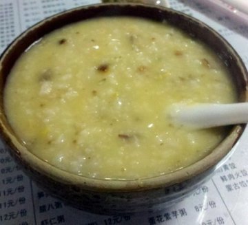 这家粥店的环境比较一般,不过人气蛮旺的,饭点去要等的时间长。他家的粥品种很多,招牌的还是蛋黄鸭片粥,味道很香,鸭蛋黄油很多不过一点不腻,而且不咸,口味很好,里面还有不少烤鸭片,货很多。他家除了粥还有些小吃,感觉比较油腻重口,搭配粥吃还好。…查看更多