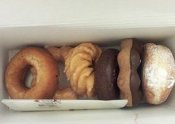 很多品种的甜甜圈,选了一个酸奶口味的甜甜圈,它和其他甜甜圈的差别就是外面涂了酸奶口味的涂层,其他没有啥差异。酸奶层不够酸,但是很甜。涂层脆脆的,里面的面包很松软。查看更多