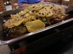 烤鱼味道尚可 福福小猪等級32013-05-2211 瀏覽 關注 地处新东安6层,交通不是很便利的,因为在王府井步行街上,无论坐什么车,无论是走哪一个门,都得走一会儿得。话说这电梯也挺难等,上个六层得等了十分钟才上去。 店面里面黑漆漆的,但是人气还不错,人挺多的。因为黑所以也看不出干净与否,餐具是那种塑胶的,像街边小店快餐店的。因为是提前电话点餐的,所以上菜还算挺快的,两条鲶鱼,一只豆豉味的,一只做成香辣。鱼肉倒是挺入味的,但是新鲜不新鲜不得而知,配菜要了挺多,西兰花、香菇、魔芋丝、土豆等,量还算可以,香辣有点偏甜,是甜辣的口味。饮料要了两扎酸梅汤,冰的,配着烤鱼挺爽的。主食要的米饭,量倒是挺大的。 最后结账,五百多啊!一共就五个人啊!人均一百多了啊!有点不合算啊!不能刷卡啊!还好同事身上现金带的够啊!真没想到这么贵啊!…查看更多以上食評乃用戶個人意見 , 並不代表OpenRice之觀點。讚好分享烤鱼味道尚可 美椰特色烤鱼 https://s.openrice.com/KtbT1m0jgG500檢舉 張貼 評分3味道3環境3服務3衛生2抵食