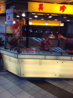 离上华威韩国城的电梯口很近。价钱越来越贵了!这个应该算是新加坡的品牌吧、1收货的大姐一般会让你试吃一些、味道我还是比较喜欢的,甜口的烤肉。有点嚼头。就是没几块就好几十啦!买200会送一块。大姐会使劲的跟你推荐,让你买够。。。Read More