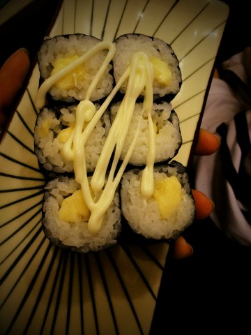 离开同事的家不算很远,因此就邀请了他一起去吃饭。吃了这里的鳗鱼寿司 ——口感很香浓,这里的鳗鱼吃上去味道很嫩,而且米饭很饱满,吃口软软的。摩托罗拉卷也是很不错的,上面的酱料也很丰富,里面的馅料也很足。这里的氛围也很幽静的,大概是下午的缘故,店内的人貌似很少。