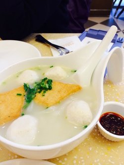 典型的香港茶餐厅的风格啊,做的也是点心和小吃啊,他们家的鱼蛋粉还是不错的,很地道的香港味道,鱼蛋做的很不错,弹性十足,入口咬下去很有口感,搭配上鲜美但是不会很浓郁的汤还有粉丝一起,很不错的小吃啊查看更多