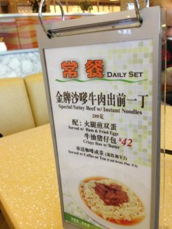 上个月去的,在楼上万达影城看完电影四点不到,下午茶时间到,和娘娘两个人选了这家翠华!茶餐厅一向喜欢,翠华的名气也大,而且我还木有吃过,但是事实又一次证明,希望越大失望越大,也不是说很难吃,实在是太一般般的水平了吧!难怪很多人说不值得一试啊!首先,环境我就相当的不喜欢,楼层很低也就算了,这个位子之间的间隔小是小的来,如果人坐满的话,坐里面的人出来都成问题,一点私密空间都没有。位子也不舒服,桌子又小,东西都放不下!其次,服务员欠他多还他少的表情,叫也叫不动!上个东西磨磨唧唧的。买单是自己去帐台结账的,前面明明没有人,还是很慢,无语了,咖啡上成奶茶,换的时候连声抱歉之类的话都不会说,怎么培训的啊!说说具体吃的,我们点了一份下午茶套餐,一份常餐。下午茶套餐要的是自家制鱼蛋粉+奶茶,39元,要了冻饮+2元。奶茶不如一般茶餐厅的香滑顺口,味道有些寡淡,实在有负盛名,连一般港式奶茶小店的水平都比不上。鱼蛋粉倒是还不错,虽说小贵了些,但是河粉爽滑晶莹,鱼蛋弹性十足,鱼肉的鲜美都体现出来了,里面有四个鱼蛋,两片鱼豆腐,撒上些许葱花,还是满漂亮的。常餐:金牌沙爹牛肉出前一丁+火腿煎双蛋+牛油猪仔包+咖啡,42元。咖啡一开始上成了奶茶,换的时候抱歉都没有,味道一般,应该是速溶的吧!金牌沙爹牛肉出前一丁,方便面加牛肉,鉴定完毕,牛肉撩特,面剩了好多,味道不灵!2片方腿2个鸡蛋2个法棍包,味道么也就这样了,而且这样一份常餐,一般人应该都吃不完的吧!味道又不灵光,实在是浪费啊!总的来说吧,没去过不死心,去过了呢,就彻底死心不想去了。哈哈哈!查看更多