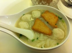 点了好评很多的鱼蛋粉,粉软囊囊的,没有什么口感,里面的鱼蛋和鱼豆腐很Q很有嚼劲,应该是手打的?粉的分量不多,不划算额。菠萝油买了两只外卖,很香,很大一只的,蛮好吃的。冻奶茶买的香槟尊的,外表很美,口感其实还满一般的。价格有点小贵,人气很旺。晚上9点还有客人在排队呐。查看更多