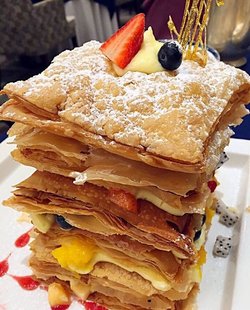 在翠园家最爱的就是鲜果拿破仑了,层次感十分的丰富哦,之后店家还很贴心的让服务员帮忙切开拿破仑,感觉服务也是棒棒的呢,上面的酥皮有一层霜糖粉覆盖着,味道甜美,下面的水果有芒果层,蓝莓层,味道酸甜参半,总体感觉美味很足,但是更多的是满足了自己的新鲜感。查看更多