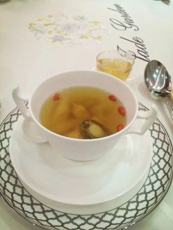 翠园是随便点都是很好吃的东西,价格可以算是挺贵的,人均二百吧。片皮鸭是做的很好吃的,有点广式的做法,鸭肉是几乎全部没有了,就是鸭皮,烤的特别的脆,上面抹了一层油料,感觉有点蜜糖的甜味,烤的也是有些焦糖香味的了。鲜菌仔鲍汤比较清淡一些,给了客人小罐的盐的,自己加,小鲍鱼看起来很Q,嚼着韧韧的,很鲜了,汤底里面还有点花胶片的。查看更多