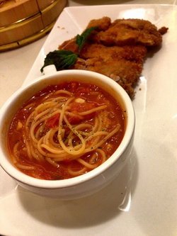 炸猪排配的是一份意面,还蛮新奇的。猪排表皮金黄酥脆,咬下去嘎嘣脆,但是里面却非常的嫩滑,很好吃。里面还加有一层淡淡的起司,很好吃。意面小小的一碗,面很有嚼劲,很好吃,番茄味道很浓郁。流沙包很不错,流沙很细腻,香味很好闻,颜色金黄,很勾人食欲。表皮很软,吃进嘴里唇齿留香。烤鸭很好吃,表皮酥脆,抹上一层甜酱,味道很好。里面的鸭肉很嫩,还带有脆骨。一点点甜蜜蜜的味道,很喜欢。查看更多