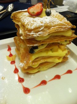 一直看到美食节目和美食微信都有介绍过这家店的,然后自己也在偶然的一个机会中有幸吃到了鲜果拿破仑,真的长得好美型,虽然我也觉得价格会高了一点,吃的时候服务生会来帮忙切割拿破仑的,感觉好小心翼翼的样子,不过味道好好吃,里面的奶油好浓的,酥饼也很脆,真心有好多层在嘴里,吃的太满足。查看更多