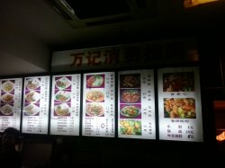 就在国展,离家乐福特别的近,还是很显眼的。一进去就能看见一柜子的各种串,种类很多价格不一,拿筐选好之后到前台交钱,小料需要单花钱,自制的小料还是很有特色的。桌椅都是木制的,看着比较老旧,墙上贴有以前北京晚报还是新华报对万记的报道,还有万记的发展史。麻辣烫都在盘子里,底下还有火烤着,不必担心短时间变凉。沾着自制的小料还是很有风味的,感觉菜的味道都被遮住了。不过还是能感觉出来丸子的质地是比较好的,因为吃起来不会特别糟,感觉QQ的,以万记的名气也不用担心蔬菜不新鲜,看着绿绿的蔬菜就很有食欲。一口荤一口素,搭配着吃很美味。最早的时候觉得价格有点贵,后来吃的麻辣烫多了也就习惯这个价钱了。查看更多