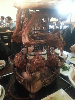 烤羊蝎子非常有特点,一个大大的架子上边挂着羊蝎子。吃法挺有特点的,蘸着店家配的小料,有些辣有点椒盐和孜然的味道,蘸着蝎子肉吃特别的好吃。羊蝎子一烤,油汪汪的,肉有一些酥脆的口感。上边还可以加个馕一起烤,有点新疆烤馕的味道。再来瓶啤酒,来点凉菜,好惬意!查看更多