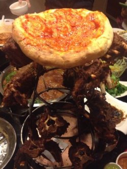 和朋友10个人一起来的。烤羊蝎子一共要了两分,一份烤羊蝎一份烤三样,考三样包括羊蝎子,羊脖子和羊尾巴,每个还送一个烤囊。味道很好,烤的火候适中,佐料也下的刚刚好,不过个人来说还是喜欢涮的羊蝎子多一些。他家涮羊蝎子味道也赞,汤底味道浓厚,不过本人口味来说再辣一些就好了! 还有那个羊肉串,串羊肉的钎子好像是一种树枝,据说这样烤出来味道更清香,吃起来也确实如此。查看更多
