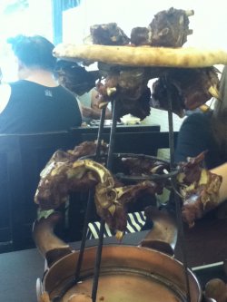 这里的 羊蝎子女名不虚传啊,,味道鲜美,羊肉炖的很嫩了,肉很足,每块都有骨随,孜然和辣椒面 还有盐 香料之类的 撒上吃更香,吃起来不错啊