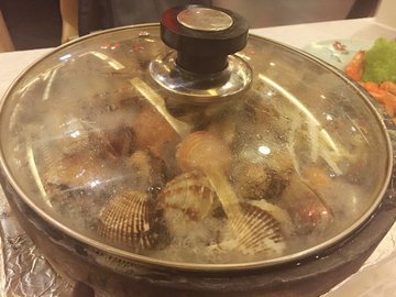 疯狂发帖之后,社区活动的奖品是PASS卡一张,这样的礼品简直太实在了,可以自己在规定时间内兑换试吃或者套餐,随时关注一下同城活动就可以啦。貌似这家店原来不叫这个,当时还来吃过一次中餐,不知道是易主了还是怎样。提前一天预约了位置,带上小伙伴一起来探店啦。地址指引:和平区贵阳路吉利花园底商(近兰州道),从国际商城后面这边走过来还是蛮方便的,门口车位是公众的,8块钱一小时有点小贵。进门之后有个吆喝的大爷,感觉特别有意思,用餐时还会推着小车卖乌豆,感觉瞬间氛围就出来了。闺蜜身体不适没有出席,改成和小盆友去啦。听了小盆友的建议选了套餐A,感觉搭配还是很合理的,不知道是不是因为主打津菜,菜品本着当当吃海货的原则,都是海鲜类的。没有心心念的蹭蹦鲤鱼还是有点小遗憾的,毕竟是特色菜么。套餐A:酸梅汤大扎1壶,量还是挺足的,偏甜味。不过不是川菜馆或者麻辣火锅,配酸梅汁总觉得怪怪的。尤其是和海鲜搭配,有点担心肠胃。盐水海虾,虾的个头比较小,盐水加花椒煮制之后,味道比较清淡,原汁原味,吃的就是小虾米的鲜味儿。肉质紧实,还不错。蔬菜沙拉,其实就是土豆沙拉了,里面加了鸡蛋碎、胡萝卜、黄瓜、番茄、玉米和火腿丁。土豆泥很细腻,拌制的时候放了芥末油,吃着比较清爽,不像普通的沙拉里满口的蛋黄酱味道。菜量也比较大,很扎实的一份。石锅海中鲜,烹饪手法比较奇特,生的麻蛤、花蛤和蛏子,倒进加热的石锅中,盖上盖子,靠石锅的温度烹熟海鲜,过个三五分钟就可以蘸着调料食用了。吃的就是海鲜的鲜味,没有经过任何加工,天然的鲜甜滋味。第一次端上来的石锅不太热,又给换了一个。贝类食材分分钟就张开了壳,完全没有泥沙,蘸着调味料吃起来特别鲜美,有种瞬间移步海边的感觉。粉丝蒸扇贝,扇贝不够肥美,小小的一颗,不过配上粉丝和蒜蓉之后蒸制还是挺鲜的,口味上稍咸了点儿。家焖海桂鱼,海桂鱼真是第一次吃到,硕大的一条鱼端上来简直惊了,最后整个打包回家了。只有一根鱼骨,没有小刺,非常适合小朋友食用。家常的红烧鱼做法,鱼肉鲜嫩,虽然是海鱼但吃不出腥味,配酱汁特别下饭。葱姜炒海蟹 ,海蟹用了两只,切块之后裹糊过油炒制,本来对炒切蟹这样的菜品没有好感,觉得大部分都是壳子没什么鲜味,但这道却颠覆了对炒蟹 的印象。鲜美的滋味简直停不下来,也吃不出腥味,蟹壳特别好剥。美中不足的是吃了几块就发现了一根毛发,跟服务生反映之后重做了一份,还给道歉了,态度还是不错的,外食遇到这样的情况也是可以理解的,并没有影响心情。米饭,很迷你的一碗,圆圆的米粒看着QQ的,不是现蒸的,口感稍差,缺米油。服务态度不错的一家店,比较有服务意识,会为顾客收拾海鲜壳,揭盖子等等,遇到突发事情处理及时。现在店内主推海鲜类食材,现场称重烹制。推出的168米特价套餐就是我们今天品尝的这款,还是挺划算的。如果宴请的话可以提前预订包间,地理位置比较好,环境也还可以。…查看更多