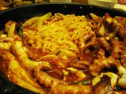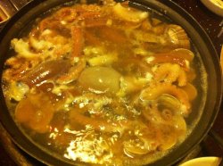 第一次听说章鱼火锅就是来这里额,门口就是几大缸子的海鲜,里面可以看到在慢悠悠挪动的小章鱼,个人还是很害怕的,小伙伴胆子那真心是大哦~~直接点了章鱼火锅外加活章鱼生吃。服务员会挑两条鲜嫩活章鱼上来,当着你的面放到火锅里,没两分钟,小章鱼就...在最新鲜的时候,店员会将章鱼大卸八块,然后放在小碟子里供你享用(我是不是形容的有点过了...)不过,新鲜的章鱼吃口上非常的Q弹有嚼劲,个人没尝试活吃。火锅里面都吸收了章鱼的鲜美,来上一碗汤,非常的滋补美味。…查看更多