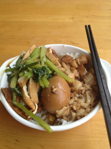 小小的夫妻老婆店,还是一对台湾夫妇。台湾也去旅游过两次了,最爱的就是卤肉饭了。他家的卤肉饭还是很地道的,一碗的分量不算很大,但卤肉的量还是可以的。肉汁的香浓拌合着米饭一起送入嘴里,那叫一个满足啊。当然卤蛋是吃卤肉饭的最佳搭档,再加上些豆干或者蔬菜就更美味了。他家可以提供外送的,不过有起送标准,饭点的时候可能会比较忙速度慢,必要时可以提早订。…查看更多