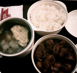 这里是吃商务简餐的最佳地点。而且价格实惠。喜欢这里的板栗烧鸡饭,不但是板栗烧鸡,而且还有例汤,米饭。板栗烧鸡的板栗很酥嫩,而且鸡肉很美味,很嫩。最主要的是酱汁可口。例汤送的是蛋花汤,虽然普通了一点,但是还是不油腻,很解渴。查看更多