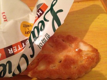 最近几年才开的连锁店吧,装修、环境都远比其他同类零食店好。进店的一刹那就觉舒心。趁了写零食糕点,打折后价格实惠些。绿豆蛋糕,原以为里面会有绿豆馅,吃了才晓得绿豆是混合在蛋糕粉中,味道有点怪怪的?很小一个,一口解决,还行
