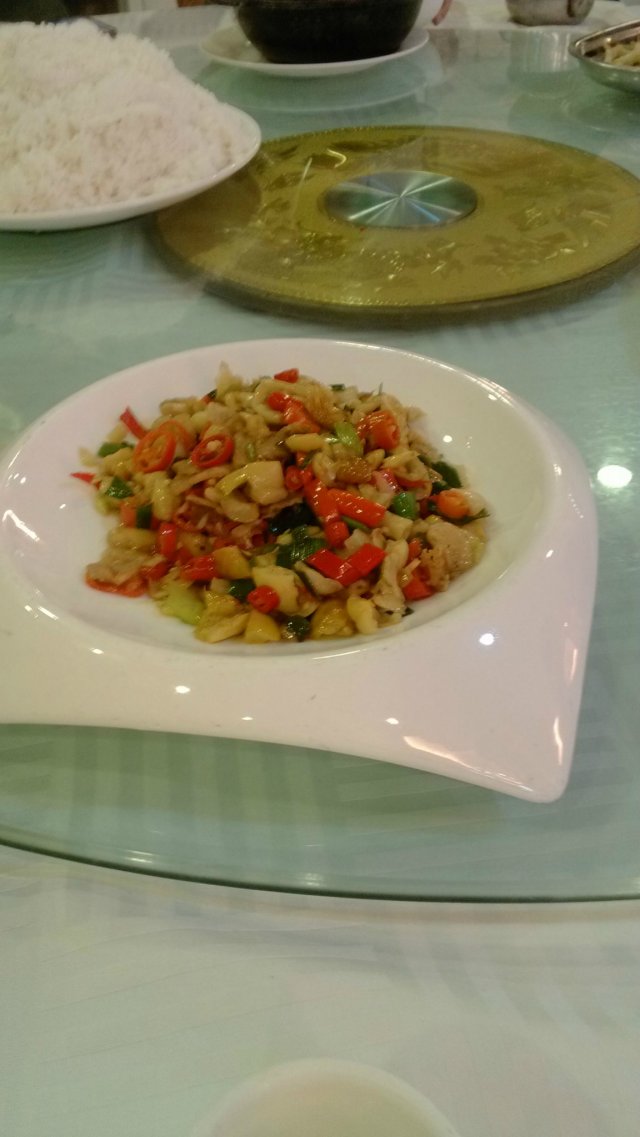 昨天同事给我说她今天请我吃饭,我当时还有点纳闷,会是因为什么原因请我们呢?我当时想到一条,别是最后的离别啊!我的小心脏可真的是伤不起了。就餐的地点在楼下,我们到的时候,先走的几个同事已经落座了,已经陆续的上了几个事先点好的菜,一个清炒菜苔,一个干锅花菜,一个酱炒黄瓜,米饭也上上来了。这家店上菜的速度还是挺快的,可能是菜上的太快了,像干锅花菜都直接用盘子装的,没有用洒精锅加热,米饭呢?用一个大碟子装的,还不是很热,也不怎么好看。从后来上菜的摆盘,可以看出他家一店也不注意细节。菜价格是很便宜,炒菜类味道十足美味,但有汤汁的就相对有点逊色了。酱炒黄瓜刚端上来的时候,我们根本没把它和黄瓜联想起来。大蒜、红椒、腌制的黄瓜的色彩组合,使得菜搭配的相得益张。黄瓜腌制的很到位,十分的脆,并且爽口,不像我老妈腌制的黄瓜口味达到了,但是干干的,咬也咬不动。干锅猪肚茶树菇,这两道菜搭配的很有创意,给个赞。茶树菇吃在口里很嫩,味道鲜美猪肚呢?很有嚼劲。一碗香,这道菜的菜名是不是很奇特,任你怎么想象也不会知道是怎样的一道菜,它是由杭椒、小炒肉、鸡蛋完美组合而成的,既有杭椒的辣,又有小炒肉的鲜,还有鸡蛋的香。清炒菜苔,吃在口里面油太多了,没有啥特色。豆角茄子,豆角和茄子一个味,完本应该是茄子是酸味,豆角是原滋原味的。干锅莴苣,莴苣还是比较嫩的,里面还有少许的腊肉,它是熏出来的,感觉没有我老家的腊肉好吃。外婆菜,味道绝对美味,并且十足下饭。孜然牛肉,配料有好多,有洋葱、芹菜、大蒜、红辣椒。我吃的过程中,不小心把辣椒吃进去了,好辣啊!真是能迅速的刺激人的味蕾。牛肉切的很小很薄的一片,夹的时候有点不方便。…查看更多