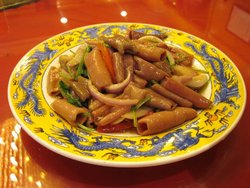 老山东鲁菜馆他家的必杀技是九曲大肠,这个大概是鲁菜中的一道名菜,大肠是内脏我一般不吃的,处理起来很困难,他家处理的干净,没有异味,而且外皮有一点点脆脆的,大肠包小肠,肉质肥美,不油腻查看更多