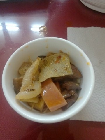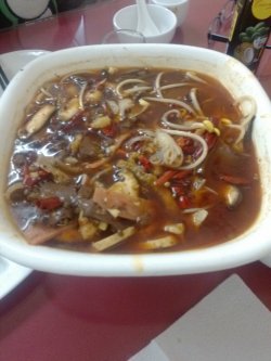 在淞滨的一家川菜馆,地铁三号线下来,走个3分钟就能看到了,就在一个吴淞初中的旁边,这家小店在附近一代是非常有名的,据说是老板就是旁边学校的老师自己经营的小饭馆,来来往往的也是学生和学校的老师,生意挺不错的!小店比较的简单,没有花哨的装修,一口就是几张桌子和椅子,二楼有两间包房,和4,5张桌子,也不是很大!因为只有我和男朋友两个人,就点了3个菜才上的比较慢,三催四催的菜上来了,毛血旺试着家的招牌菜,超级大的一份,价钱也是中等,但是里面的东西绝对比外面的饭店吃的毛血旺要内容丰富呢!!!牛百叶,血豆腐,豆芽菜这都是最基本的,一般的毛血旺都会有呢,老板很会做生意,现在魔芋丝特别的流行,老板就在里面加了魔芋丝,魔芋丝爽滑脆脆的,超级好吃,还有一片片的火腿肉,虽然薄了一点,但是辣辣的特别开胃,特别推荐毛血旺里面的酥肉,因为酥肉经过了油炸,外酥里内,没有了松脆,可肉质鲜嫩,不会特别辣,微微的,再来碗米饭,简直就是享受呢香辣猪手,着的是等了15分分钟才上来,一大排香辣猪手,外皮酥脆,咬一口,还流油,虽然骨头很多,就是这样的味道,让人不禁一口又是一口呢,猪皮的胶原蛋白特别多,QQ嫩嫩的,味道老嗲的。四季豆,喜欢这样的干煸四季豆,四季豆要抄的老一点才好吃,而且最好有点边缘焦焦的最是完美了,这样也会比较的入味,干煸的提出了四季豆的清香味道,虽然四季豆清淡一点,一个蔬菜中和一下先前两个油腻辛辣的热菜。最后花了90不到一点,旁人均在45左右吧,不能很合算,不过菜的味道可以,菜量也不少,就会觉得还算是实惠的吃饭好去处…查看更多