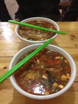 这家店在慧忠北路的速八酒店旁边,挺好找,走到哪一看见老秦人就想进去吃一碗油泼面。油泼面是纯手擀的宽面条,特别筋道,有嚼劲,里面有各种面码,豆芽菜香干芹菜胡萝卜,显得颜色很丰富,那红油往上一泼,香气就出来了。我一鼓作气全都吃完了。朋友胃口小,就吃了一个小碗的秦镇米皮,我看就跟凉皮差不多,不过它的横截面似乎是正方形的。朋友也觉得很好吃,酸酸辣辣开胃。吃完面很辣需要喝点水,店里还有自制的豆浆,我觉得掺水太多,根本没有豆浆味,最后买了一瓶可乐喝了。查看更多