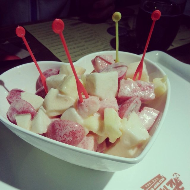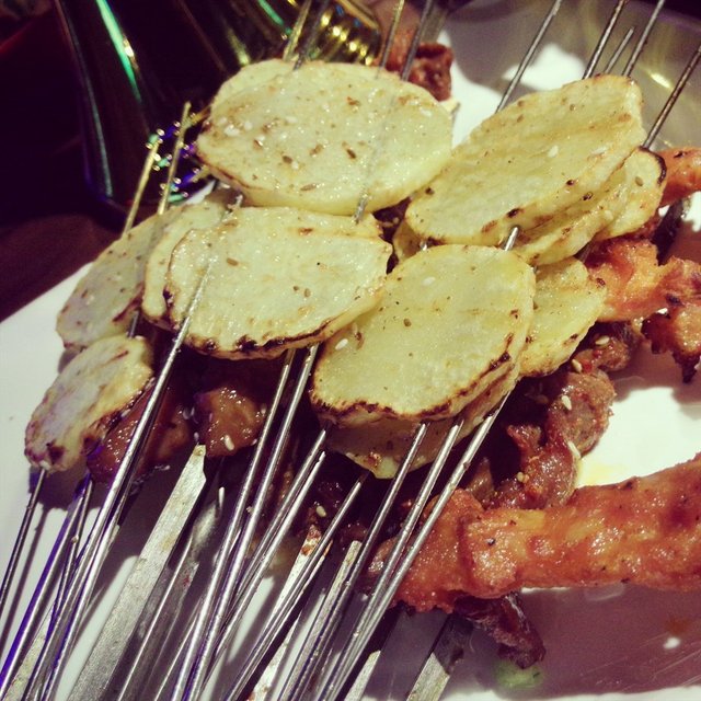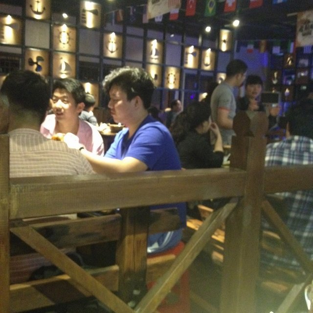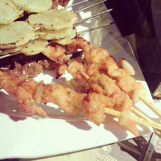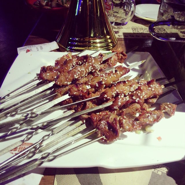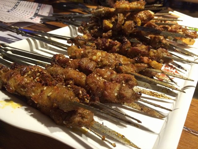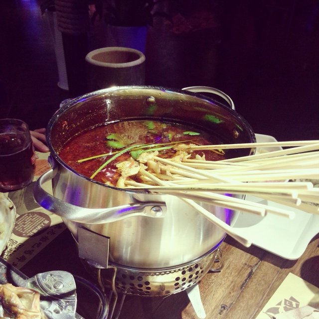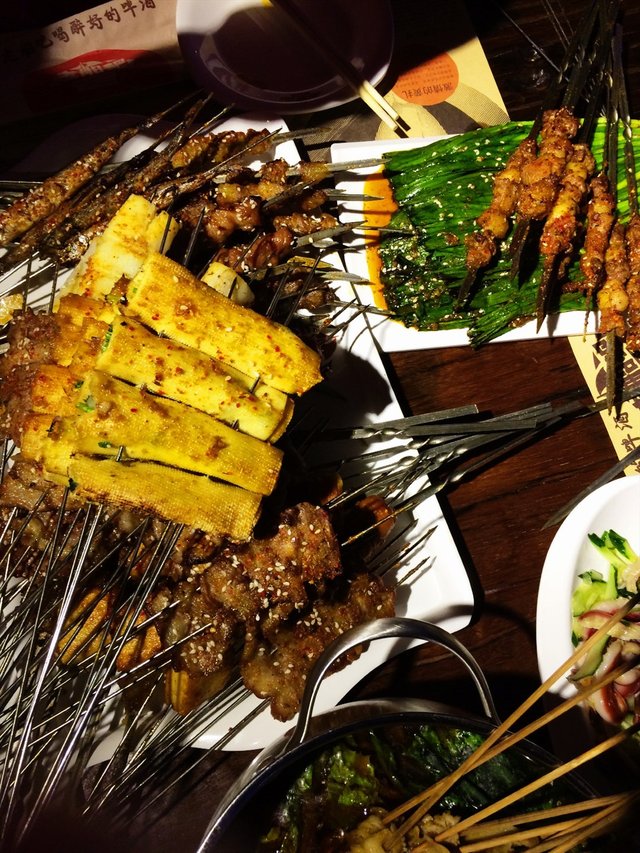 朋友五点不到就来排队了,排的时候还很多人,建议要去的人早点,环境很不错,晚上还有歌手献唱,还能点歌。四个人点了六百多,实在腻的吃不下,他家的羊肉有点膻。推荐风味毛肚,不算太辣,只是麻的很爽,吃完了还想再吃。还有推荐蓝莓山药,比较喜欢橙子味的,感觉像吃土豆泥,吃了那么多肉可以来解解腻。另外他家的钢管跳舞鸡一般般,只是皮有味道,肉不太有味道,所以后来都被我们插着玩了。烧烤推荐鱼豆腐,脆脆的,很香,很入味。烧烤千万别点羊肉筋、猪脆骨、板筋,咬不动,跟吃橡皮一样。。。这里连娃娃菜都是油油的,加了蒜蓉包着锡纸烤,实在腻。还有虾饼,一般般,多吃肉把,别点那么腻的东西。。。饮料推荐蓝莓大炮,一种汽水,原浆黑啤很苦,完全是酒,黑炮酒是葡萄味的,不太喜欢葡萄汁所以觉得一般般。…查看更多