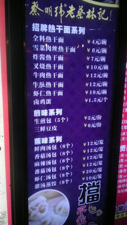 蔡林记算是比较有名的小吃店了,最有名的属他们家的热干面了,那天逛街路过,正好肚子饿,看到他家突然想吃热干面,就进去了。点了一碗热干面,价格不贵,味道真是好,最好吃的要属他们家的芝麻酱了,真是香 黑色的芝麻酱,醇正香滑,配上Q话爽口的热干面,真是一绝,吃一碗肚子就能填饱,而且价格划算,值得推荐