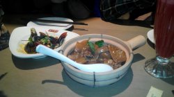 海淀区成府路28号五道口购物中心6楼(近世纪谭府),装修的很赞,座位都是软座, 好舒服。人也不多,上菜稍微慢了点儿。肠粉这个是在香港的时候最喜欢的,这家的肠粉,做的事比较滑嫩的,但是稍微有点儿厚,里面的虾仁也比较Q,甜酱油放的有点儿多,稍微咸了点。蒸的凤爪,有点儿辣,肉很嫩,一下就能脱骨,而且很大只的。腊味煲仔饭米饭硬硬的很好吃,辣味给的算是比较多,本身的咸味不是很够,要再多放点儿煲仔酱油才够味。价格不算贵,可以当工作餐的价格。…查看更多