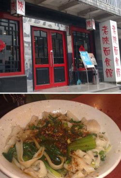 老陕面食馆西长安街15号民航营业大厦后楼1楼(近西单文化广场),.一家吃面食还不错的地方呢,有那个陕西的裤带面,很好吃哦,那个面很宽,就像皮带一样呢,而且比较厚,口感很筋道,放的是炖肉的那种卤子,味道浓郁,还有很浓厚的辣味,很不错哦。查看更多