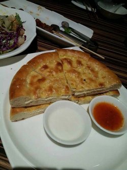我真的不是怎么要吃西北菜,因为都是以牛羊为主,我个人是不吃羊肉的。so。。。实在不觉得有什么好吃的。大盘鸡,看上去挺大一盘,鸡也蛮多额,但是觉得太辣了,不是特别适应这种辣,鸡肉还算嫩的,不过有那么两块吃上去还是木夫夫的,可能是鸡胸肉。烤羊腿,我不吃羊肉不是因为什么宗教信仰,个人就是觉得羊骚味,朋友们倒是还蛮喜欢这个菜的,让我咬一口,我想说还是有股羊骚味的好嘛。奶茶,太厚重了,再厚一点,我觉得都能拉出丝了好嘛,味道太重,我不是特别喜欢。呃。。。好像我是过来吐槽的,不不不,其实还是可以的,只是我个人不怎么偏爱西北菜。P.S 我是真心不喜欢看跳舞表演啊,感觉非常嘈杂。查看更多