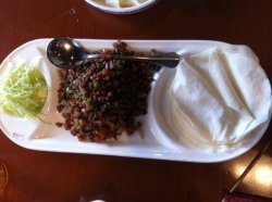 他们家的羊肉薄饼真的超美味,羊肉切成小丁和洋葱,胡萝卜,青椒丁一起烧的,饼超级薄的,还配了菜,包在一起真的是香啊,还喜欢羊肉串,真的超级正宗的,夏天的话还有哈密瓜汁,超甜的,服务一般吧,都是新疆人的服务员,晚上还有表演,挺精彩的,环境挺有民族特色的!查看更多