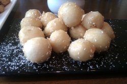 耶里夏丽是吃新疆菜的,价位合理,口味正宗,这次点了拔丝奶酪,吃法很特别,菜端上来,要马上把糖裹的奶酪拔出来,然后放在旁边的清水里面蘸一下,防止糖浆粘筷子.如果时间长了,等糖凝固,奶酪球就很难拔下来.奶酪球的奶味非常足.查看更多