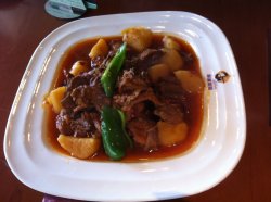 这里的烤羊肉串很好吃,经常有人在这里等肉串的外卖。以前就是一家很小的店子,后来搬到这里来了,生意就变得非常红火了。门口等位是常事,等位的时候有奶茶喝。大盘鸡的味道一般,我更喜欢吃烤羊棒,就是吃多了,还是有点儿腻。番茄牛肉的味道真不怎么样,就是番茄干,吃起来的感觉怪怪的。比较有特色的地方是,这里有新疆歌舞表演,女演员特漂亮。还有这里的葡萄好甜的,真好吃。如果是过生日的来这里,还有新疆帽子送,好漂亮的。查看更多