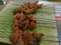 记得还是1年多前呢,那时候微博有个微美食,我中奖了聚点串吧的双人套餐。选了一天去的。他家在东直门内大街上,挨着东兴楼,很好找,坐车到东直站好像是,下车就是。套餐的内容很丰富,有羊肉串、五花肉、生蚝、鸡翅、培根卷香肠、大拌菜、老醋花生、烤韭菜和金针菇。羊肉串10串,吃过这种餐馆的羊肉串的亲们都知道羊肉串的大小,这家也一样,虽然不大,但是很好吃,而且没有什么肥肉。五花肉5个,也很好吃,微甜的口感。生蚝蛮新鲜的,给了半打,里面有蒜蓉,个头小一些,因为小生蚝嘛,不过肉不小。鸡翅是蜜汁口味的微甜的,鸡肉很嫩,外皮焦焦的好吃。卷香肠是1串,很大的,上面还挤了沙拉酱。大拌菜和老醋花生都不错,吃了很多肉来点蔬菜不错呢。烤的素菜是韭菜和金针菇。量都不少,韭菜一大盘子,挺嫩的韭菜呢。金针菇是锡纸的,拿来时候热气腾腾啊他家服务还不错,进去主动打招呼。环境也还不错…查看更多