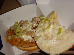 有次赶火车,于是就去这家店解决肚子问题,这家店蛮大的,里面都是旅客.我点了新奥尔良鸡腿堡,色拉和饮料.饮料是可乐感觉好淡啊.新奥尔良鸡腿堡还不错,里面的鸡肉比较嫩还有汁水就是酱汁没调好,太甜了不好吃,色拉应该不是新鲜的,是仿冷藏室拿出来的,太冰了,里面的玉米蛮好吃的.查看更多