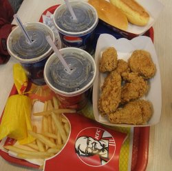 今天过年上班后第一天 超值午餐继续开放,突然发现之前的黄金脆皮鸡不见了,原味鸡回归了。17元的午餐超值,有汉堡 小杯可乐和原味鸡块!我要三角的,脆脆的外皮,里面鸡肉又香又嫩!还有汁水呵呵!今天的汉堡里的鸡肉也不小,生菜也没有烂,好吃!建议大家原味鸡买三角,这个部位的鸡块肉是最嫩的!查看更多