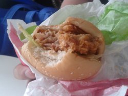 某天正好赶时间吧,于是就选择了肯德基的午餐啦,买了汉堡包,因为速度快嘛,套餐哦,我最喜欢的还是薯条,每次BF买了都是我一个人吃的,真的好吃哎,还有色拉,量也蛮大的,里面玉米比较多,还有黄瓜,颜色蛮好看的呢~喜欢~汉堡包是不辣的,我喜欢,里面鸡腿很大哦,爽~查看更多