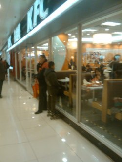 这家肯德基,位于东三环中路65号富力广场,从地铁就能走到。服务很规范,速度也很快。中午的套餐很超值。老北京鸡肉卷,15元一套,里面带薯条与可乐。鸡肉卷里面的酱有点像北京烤鸭的酱,里面的黄瓜条也很好,鸡肉卷里的鸡肉就是鸡米花。咖喱猪排饭也很好吃,猪排炸的酥脆,咖喱的味道也很正。