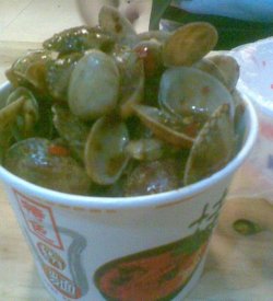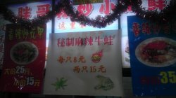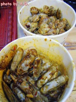 貌似自打happy站台开业,这个店店就在了!老板没换过,兄弟几个一起经营!:)作坊不大,可以看见洗小海鲜的池子,可以看到热火朝天的炉子,可以看清成品是怎么出来的!之前有海瓜子,可后来就没了!点击率超高的是圣子和花甲,每次去都得排队等候,如果机会好才会有位置从,不然就得打包自己找地儿吃了!花甲和圣子都是先在沸水里氽会会,然后再在已用蒜、姜、花椒、辣椒爆香的锅里爆炒,最后再淋上点点豆瓣酱出锅!一份超级无敌好吃的胖哥花甲就诞生了!因为洗得干净,所以都吃不到沙!老板时不时还会问问过来吃的盆友,味道怎样,有没有沙什么的!很注重细节噢~还有就是牠家也有积分卡呢,吃满十碗送一碗噢~查看更多