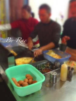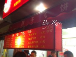 他家就卖飞饼一种,但是就是生意火爆,可见口味决定一切啊,吃货都会排队等买这一块块的飞饼,老板很人性化,每次都会先问是否吃葱,然后现点现做,人气最高的就是榴莲飞饼,是甜味的,榴莲是我最爱了,这个是必吃的,咸味的主打口味就是培根鸡蛋了,貌似很多男士就爱这口,除外还有香蕉飞饼,波罗飞饼,牛肉飞饼,韭菜飞饼,花生酱飞饼,香葱鸡蛋飞饼等,口味实在是很多,每次都会选择性困难症发作啊,他家的饼皮偏油腻,但是很香脆,面粉和油黄油的完美结合的飞饼皮是老板的制胜秘方咯,里面的料也十足,怪不得生意好呀!查看更多
