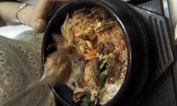 中午去吃的 店面很小 选择只有冷面和石锅拌饭我点了荞麦冷面 同事点的牛肉石锅拌饭拌饭倒是配汤的 上来热气腾腾的 据同事说味道也不错 但是没有锅巴的 有点失望我点的荞麦冷面 冷面倒是很有弹性 但我实在不喜欢着冷面的汤汁 一股怪味道 里面有黄瓜、泡菜和牛肉外加半个鸡蛋 味道是不在不喜欢 下次还是点石锅拌饭就好~~~~~~~查看更多