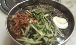 店面不大看上去很山寨的样子听说老板娘是山东人怎么买起朝鲜冷面了,不过这里中午生意非常好特别是这种大夏天的来这里吃上一碗荞麦冷面非常舒服,他们家的冷面上面没有什么肉放的是蔬菜丝不过配上冰冰凉凉酸酸甜甜的冷面汤和嚼劲十足的荞麦面吃起来那才叫一个过瘾啊。查看更多