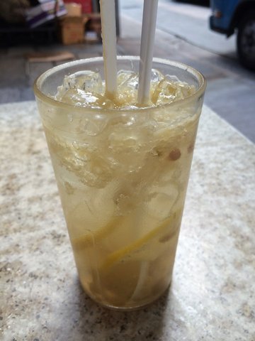 喜欢去呢类大排档吃,虽然环境一般,但胜在够情怀,有港味。或许是期望值太高,吃下去后没有很惊艳的感觉。本来要牛肉碎的叫错了牛肉片,友人要了公仔面,听旁边的人说,公仔面的番茄会比通粉的要多。果不其然,后悔没有叫双番茄,更喜欢番茄的味道可以再浓一些,再酸一些。这个咸柠檬七喜我觉得这是惊艳!深圳基本没能喝上咸柠檬其他,咸柠檬的量很足,七喜用的是玻璃樽的,所以分量很够,真是非常喜欢。味道没有很惊艳,应该不会再来第二次。但咸柠檬其他确实推荐。