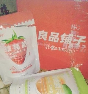 良品铺子武珞路五巷46号凯乐花园6栋1楼53号, 中南路。品种很齐全的零食店,要了一包草莓脆,感觉很好吃的呢,很大一包,但是很轻,没什么分量,打开包装以后,里面都是很小个头的草莓脆,完整的那种,一口一个很好吃,味道酸甜,很不错的零食。